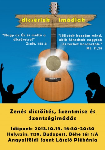 Zenés dicsőítés, szentmise és szentségimádás az angyalföldi Szent László plébánián (1139 Budapest, Béke tér 1/a).